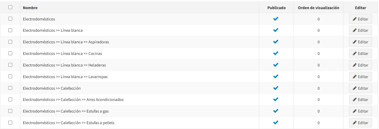 - En Catálogo → Categorías, selecciona la categoría hija.