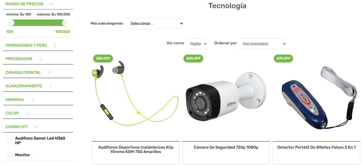 Permiten al cliente "filtrar" por marcas, colores, tallas o especificaciones técnicas en el panel lateral.